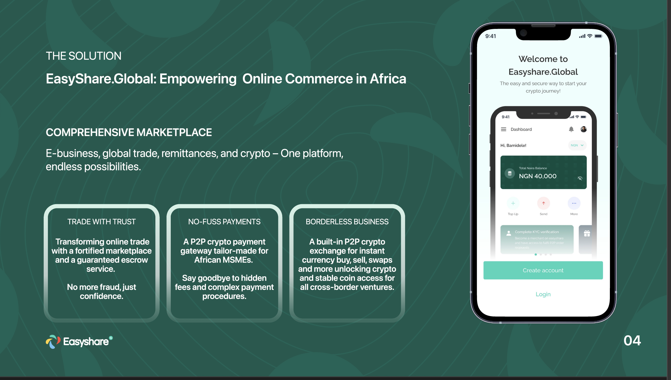 A freelance graphic designer in Nigeria receives crypto payments from clients abroad. She needs to quickly convert her earnings into naira to pay rent and groceries. By using the “Sell Crypto” feature, she selects USDC, enters the amount, and chooses from verified buyers in the peer-to-peer (P2P) marketplace. Once the buyer confirms receipt of the crypto, naira is deposited instantly into her fiat wallet, which she can withdraw to her local bank. In this way, Easyshare.Global helps eliminate long wait times, expensive withdrawal fees from global exchanges, and the need for third-party conversion apps.